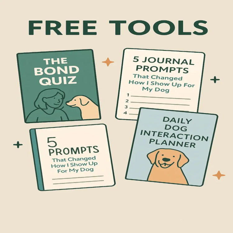 Discover our Free Tools collection designed to help you create a calmer, more connected relationship with your dog. Access The Bond Quiz, the Daily Dog Interaction Planner, and journal prompts that inspire deeper trust and understanding. Each tool is made to help you reduce stress, improve communication, and strengthen the human-dog bond. All at no cost.